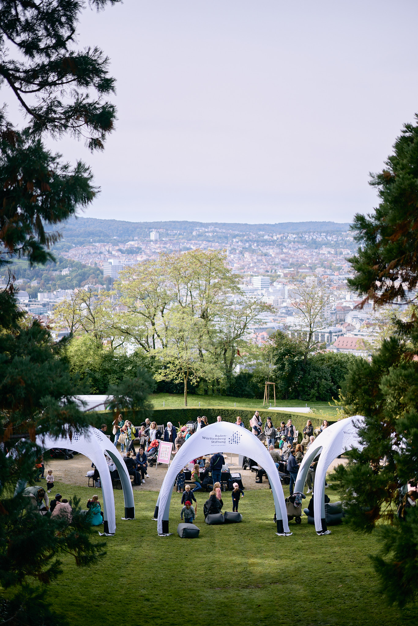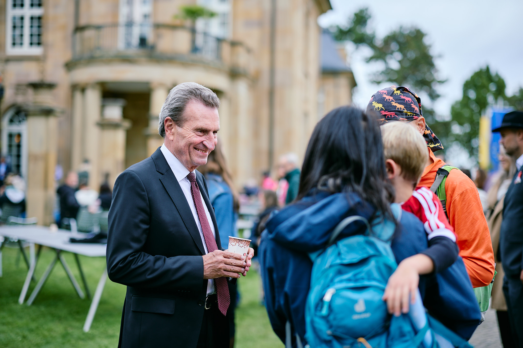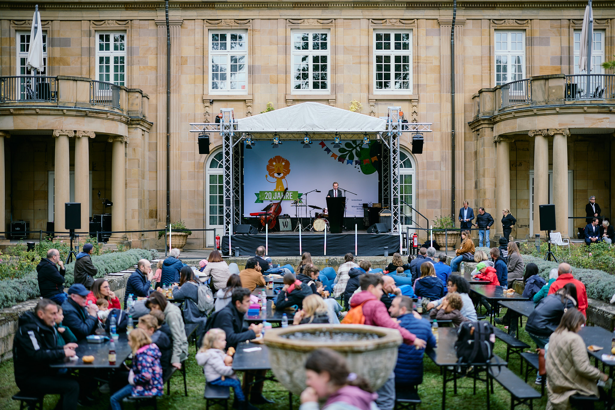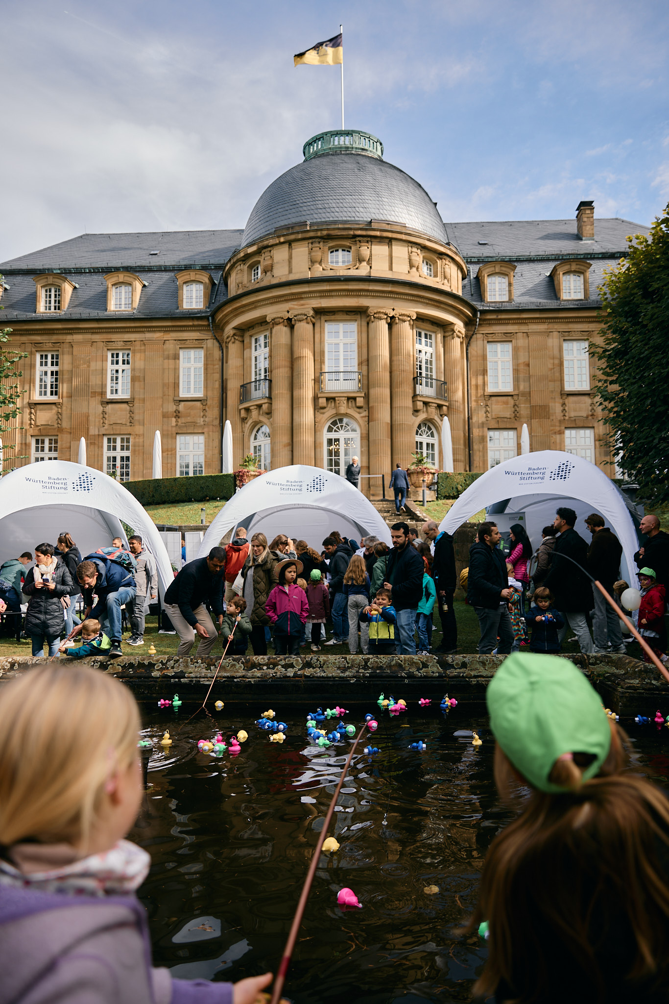 Überall im Park verteilten sich Spielstationen. Unter anderem: Fußballdarts, XXL-Jenga, Kinderschminken oder Entenangeln – für viele der Gäste wohl eines der Highlights. Auf der Bühne standen Zaubershows, musikalische Beiträge der Landesakademie für die musizierende Jugend und Gesprächsformate auf dem Programm. Als Gäste mit dabei: der Mitgründer der Stiftung und Ministerpräsident a. D. Günther Oettinger sowie Staatssekretär Florian Haßler, der die Besucherinnen und Besucher auch als Hausherr der Villa Reitzenstein herzlich begrüßte.