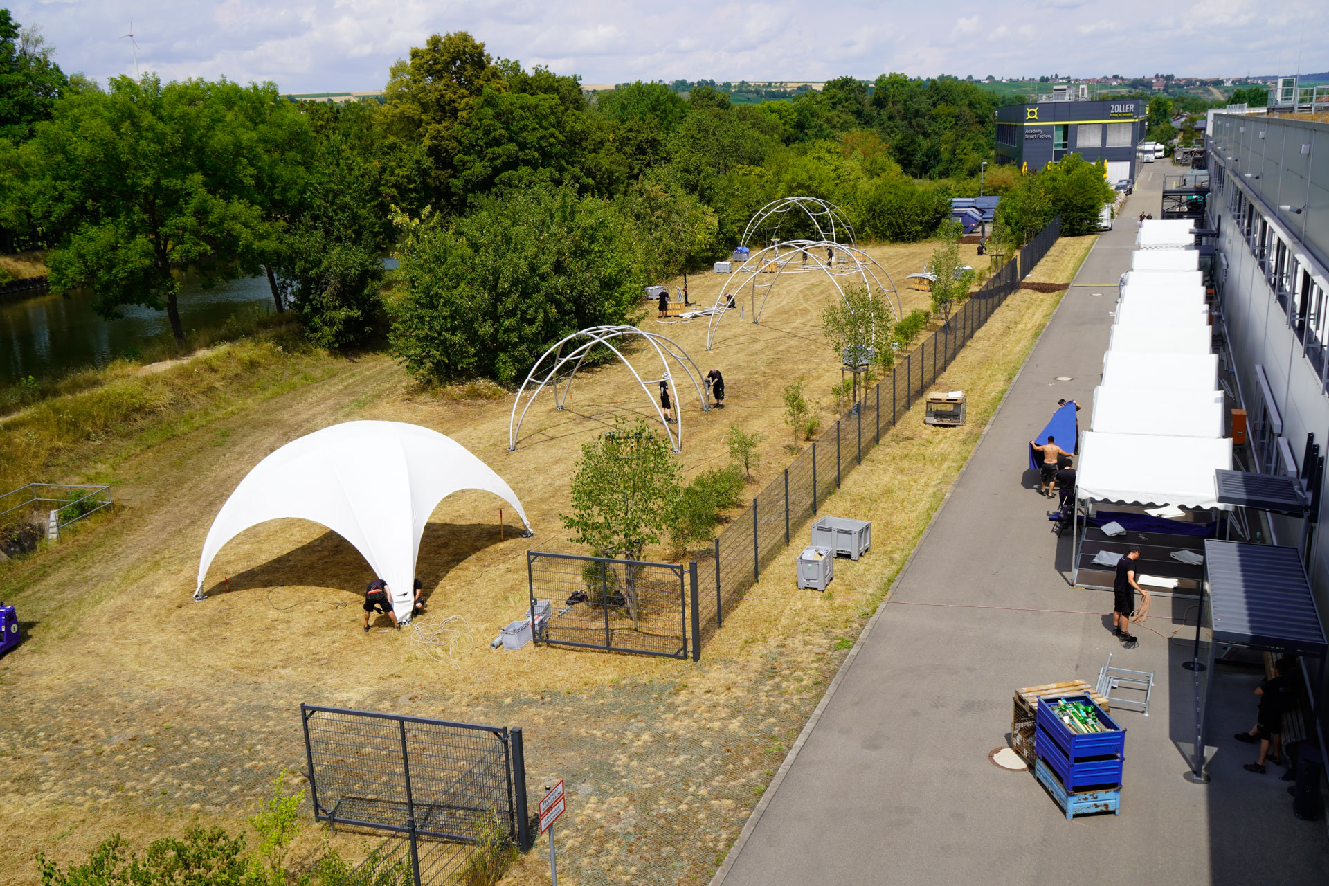 Die b&b group wurde von ZOLLER mit der technischen Ausstattung beauftragt. Zum Einsatz kamen zwei Crossover bzw. Kuppelzelte in verschiedenen Größen sowie fünf weitere M-Zelte. Ergänzt wurden diese durch eine großzügige Fläche von Sonnenschirmen und Stehtischen.